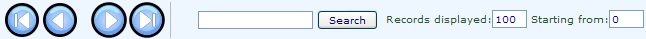 The top row of the table has three columns: The dialogue on the right gives options for displaying a number of records, and a starting point. In the middle is a search bar and the symbols on the left let you move backwards or forwards through your list.